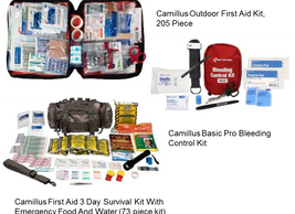 The First Aid 3 Day Survival Kit With Emergency Food & Water has everything you need to survive in an emergency or disaster situation. Put this kit in your camping or hunting gear, RV, boat, car, or home. Kit contains: 3 days of food and water for 1 person, flashlight with batteries, poncho, survival blanket, hand warmers, light stick, whistle, variety of bandages, antiseptic wipes, first aid creams, ointments and pain relief medications; 73 piece kit
